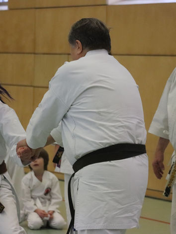 Für die Oberstufe gab es viel zu tun. So wurde hier ein Teil Kampfrichterschulung in Hinsicht auf das Kihon Ippon Kumite sowohl auch speziell zur Kata Kitei durchgeführt.Natürlich wurde auch wieder die Kata aus der Masterclass vom Freitag Abend, "Washi no Maai" wiederholt und gefestigt.