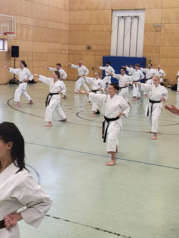 Sonnabend früh startete dann der Lehrgang für die Unterstufe mit Heian Kata , Bunkai und Basics im Kihon. Anschließend ging es weiter mit der Oberstufe mit Taiji Shodan, Taiji Nidan und den Themen aus der "Masterclass" vom Freitag Abend.